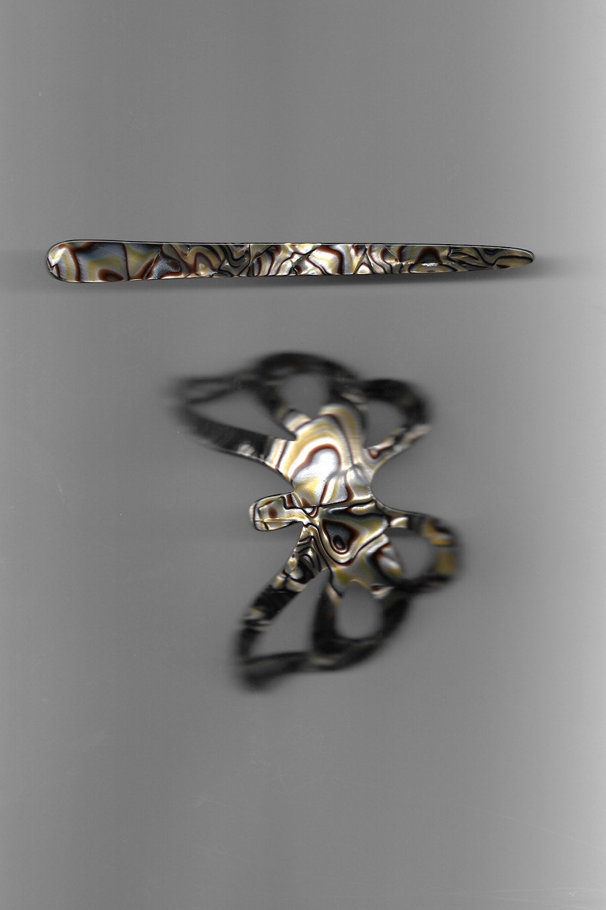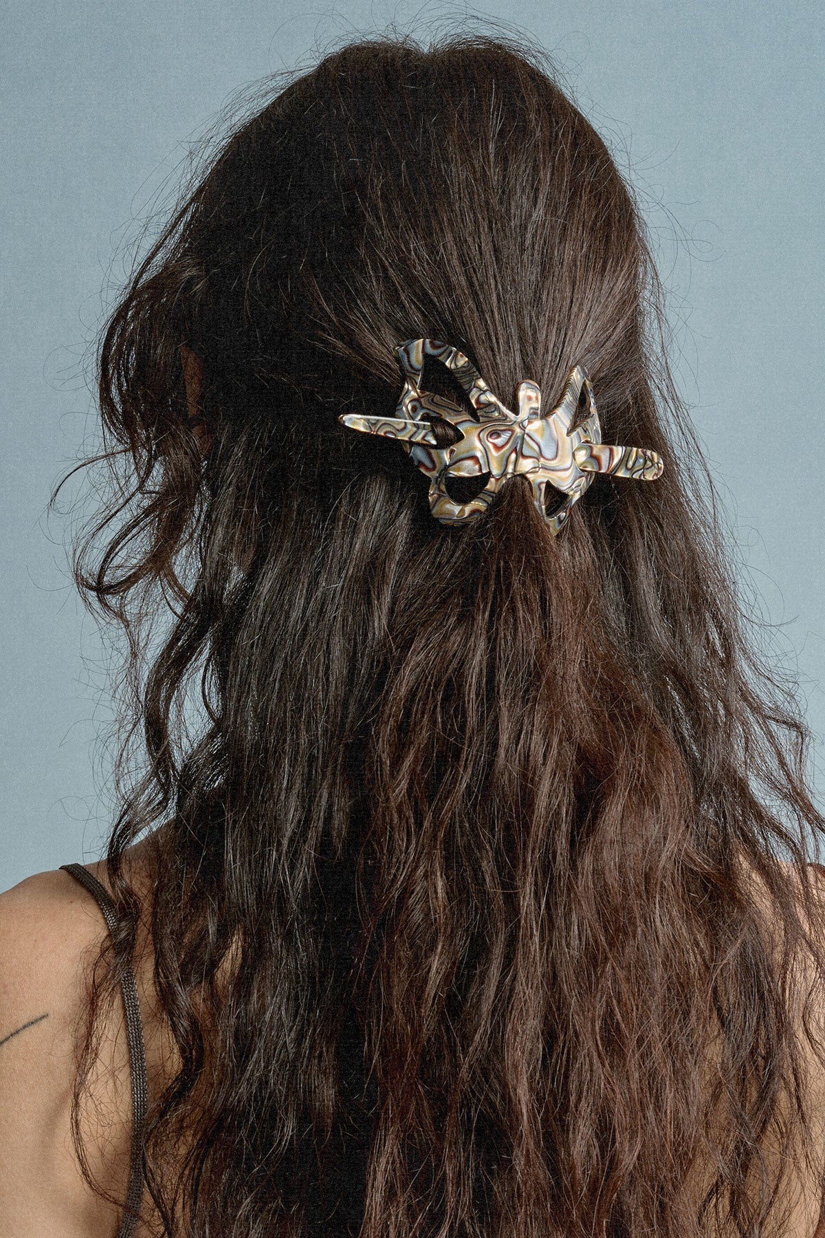 Inspired by my grandmother’s own clip, the decorative Butterfly Hair Pin is made in France in a ten step process all done by hand. Each clip is cut with hand-held lasers, shaped and polished. Made of 100% French acetate.