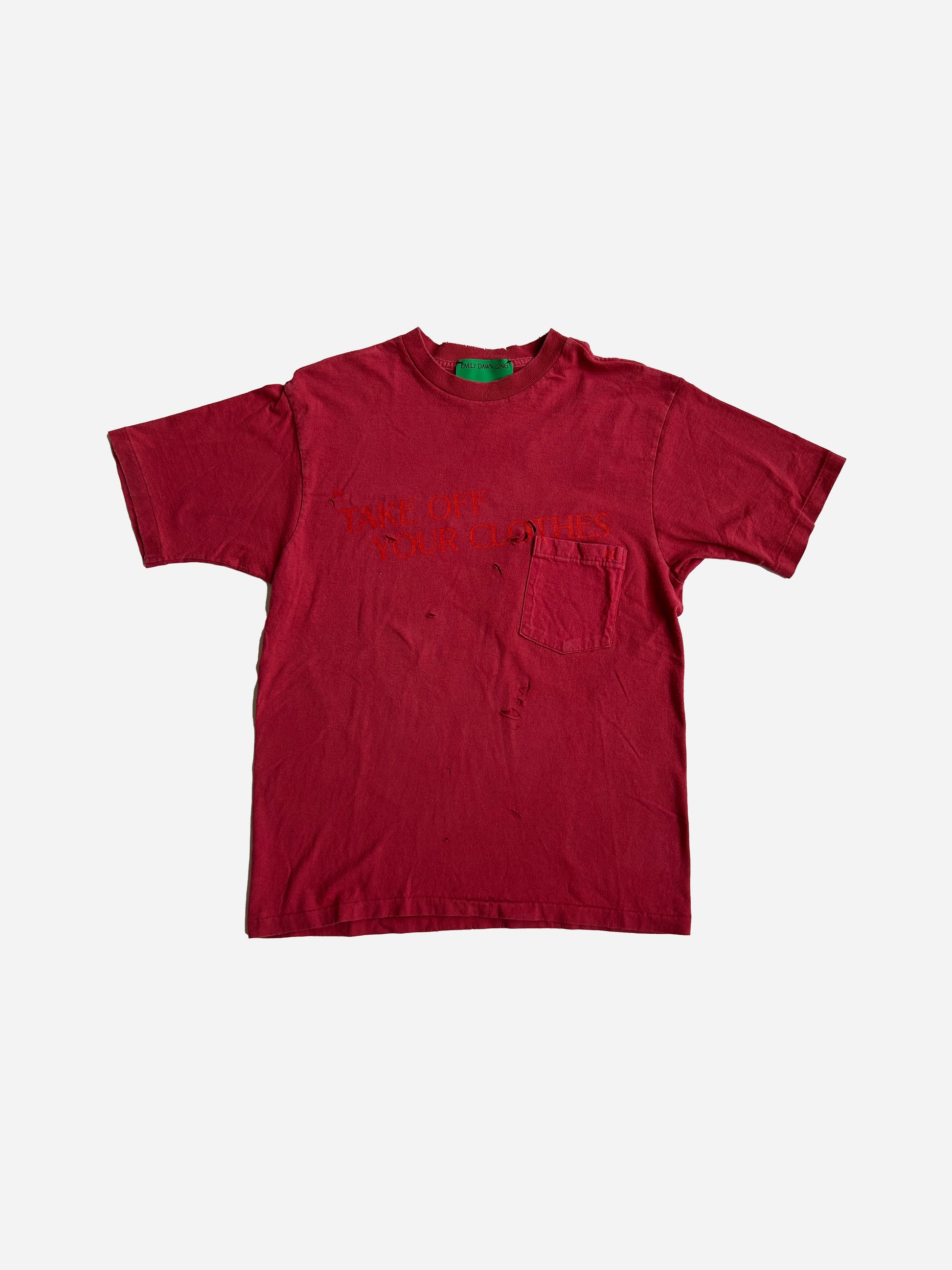 "TAKE OFF YOUR CLOTHES" are all very very very specifically sourced one of a kind vintage t shirts. That EDL deems perfect - screen printed on the reverse side in different colors in our EDL BRAND FONT. you get 2 amazing tees for 1