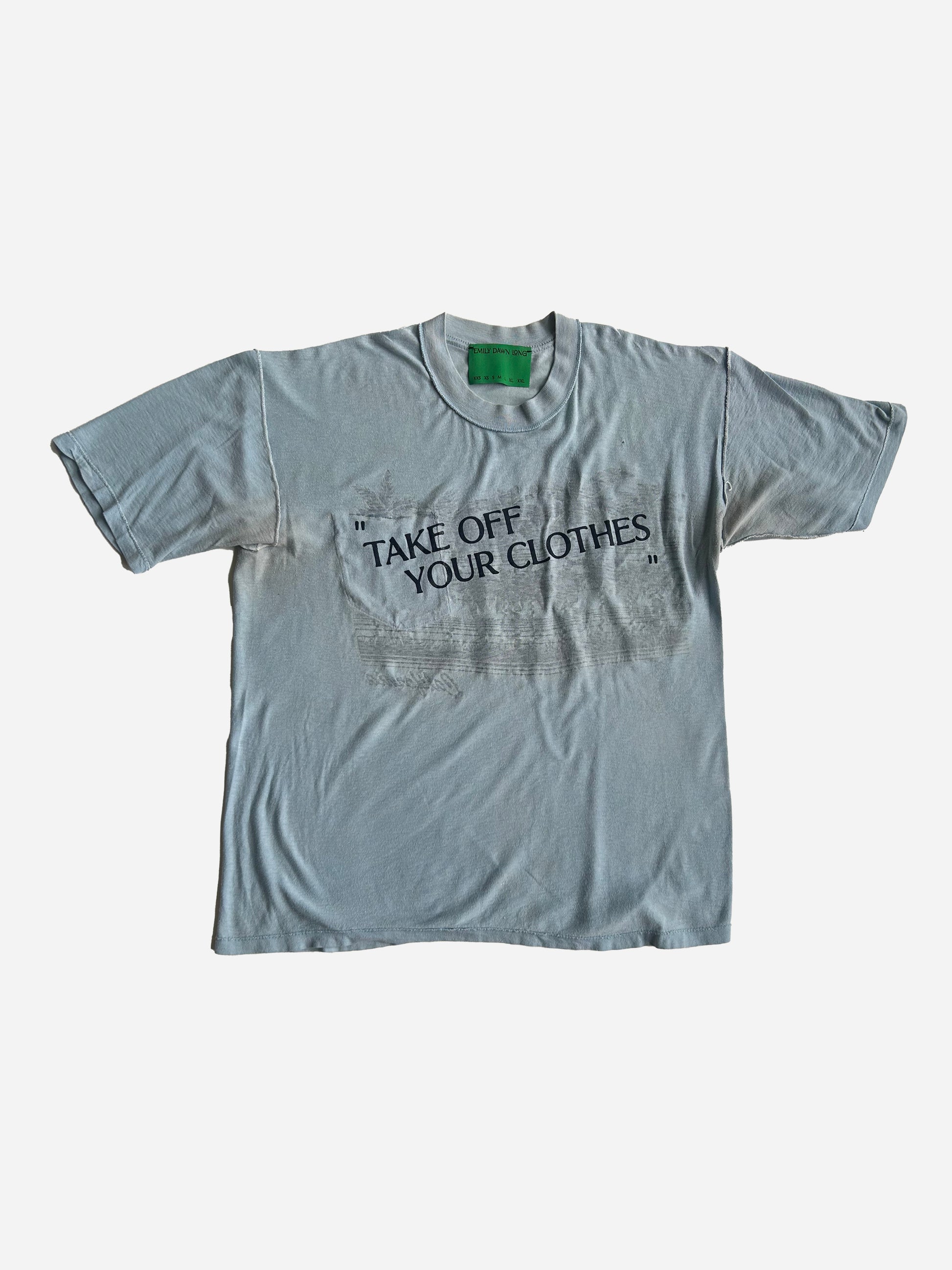 "TAKE OFF YOUR CLOTHES" are all very very very specifically sourced one of a kind vintage t shirts. That EDL deems perfect - screen printed on the reverse side in different colors in our EDL BRAND FONT. you get 2 amazing tees for 1