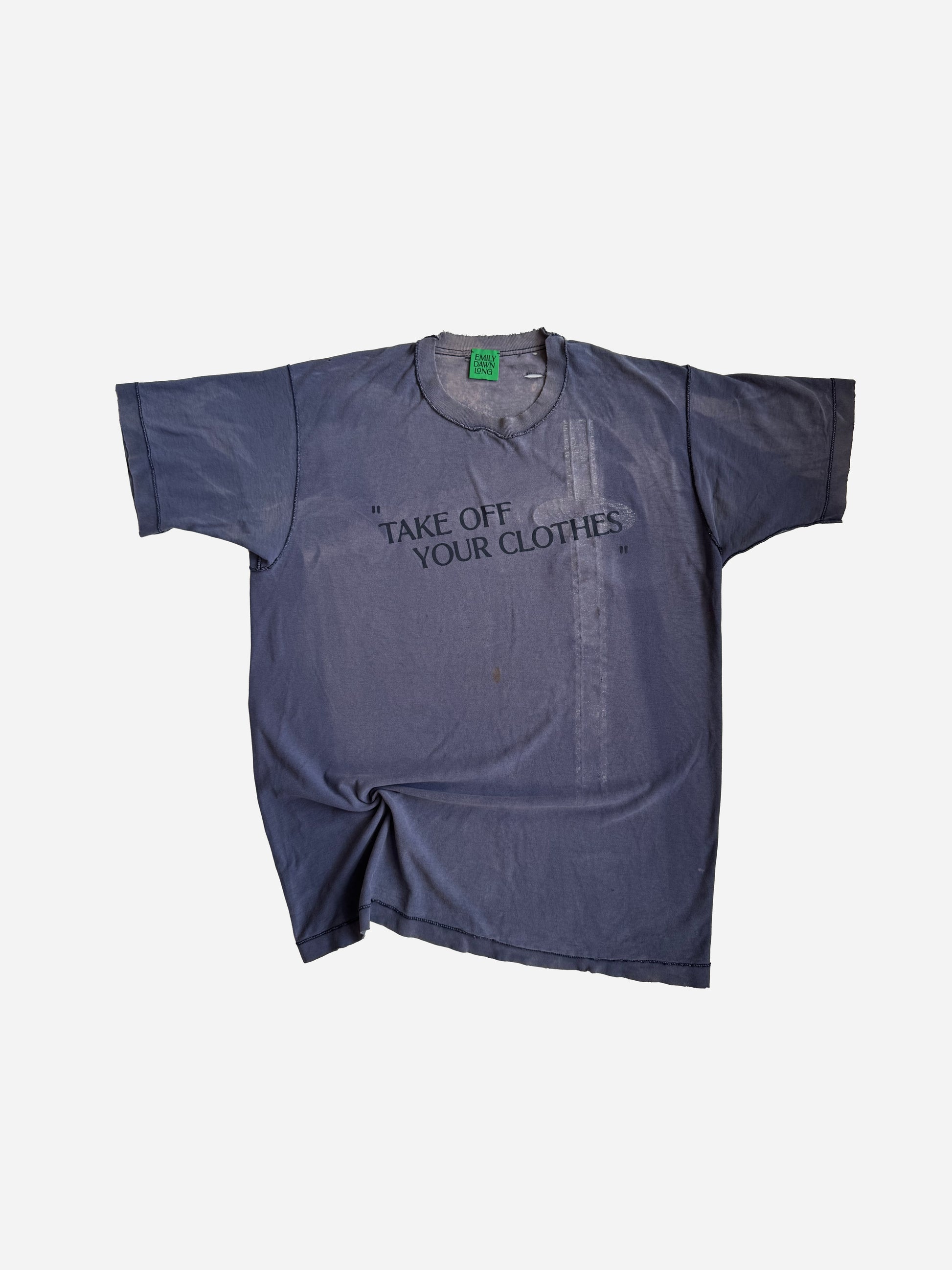 "TAKE OFF YOUR CLOTHES" are all very very very specifically sourced one of a kind vintage t shirts. That EDL deems perfect - screen printed on the reverse side in different colors in our EDL BRAND FONT. you get 2 amazing tees for 1