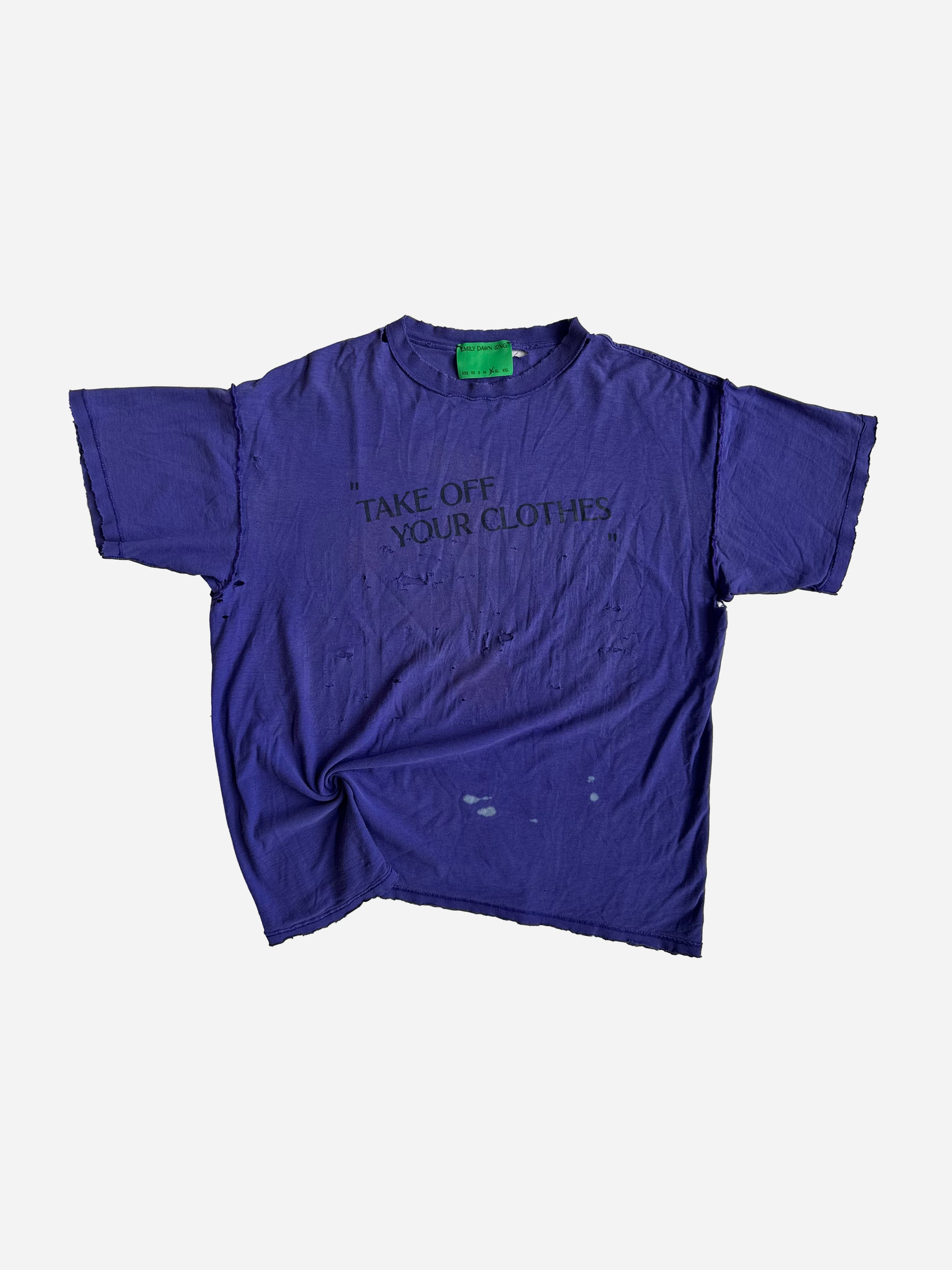 "TAKE OFF YOUR CLOTHES" are all very very very specifically sourced one of a kind vintage t shirts. That EDL deems perfect - screen printed on the reverse side in different colors in our EDL BRAND FONT. you get 2 amazing tees for 1