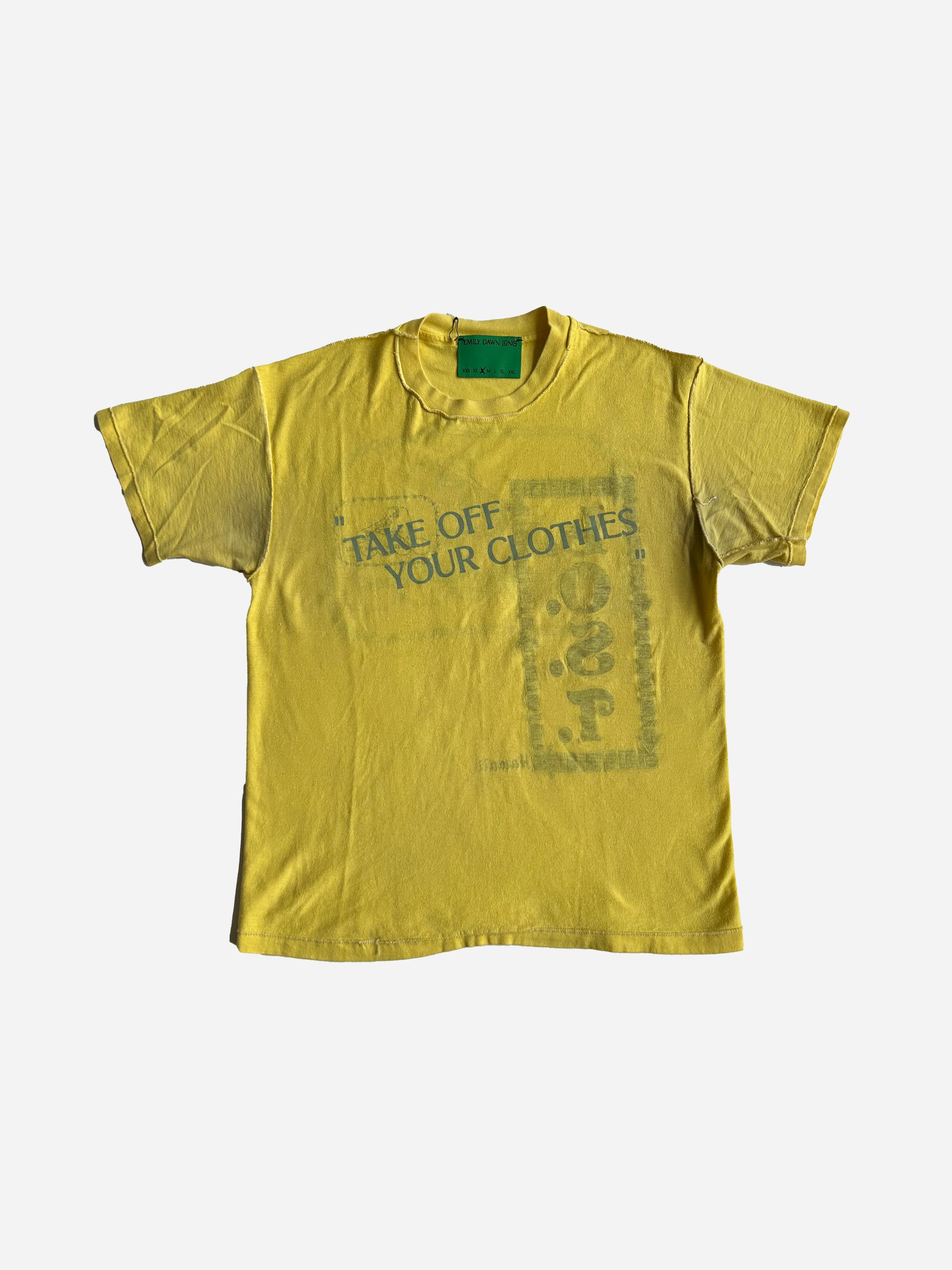 "TAKE OFF YOUR CLOTHES" are all very very very specifically sourced one of a kind vintage t shirts. That EDL deems perfect - screen printed on the reverse side in different colors in our EDL BRAND FONT. you get 2 amazing tees for 1