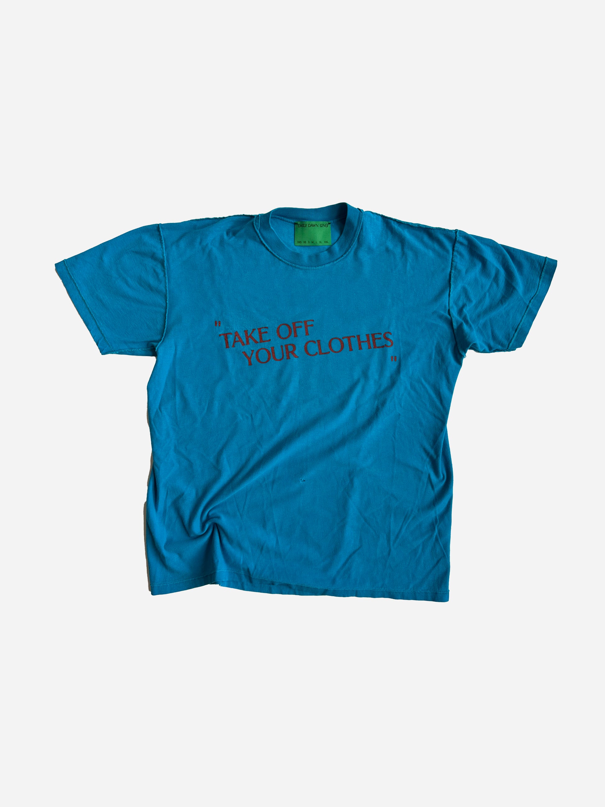 "TAKE OFF YOUR CLOTHES" are all very very very specifically sourced one of a kind vintage t shirts. That EDL deems perfect - screen printed on the reverse side in different colors in our EDL BRAND FONT. you get 2 amazing tees for 1