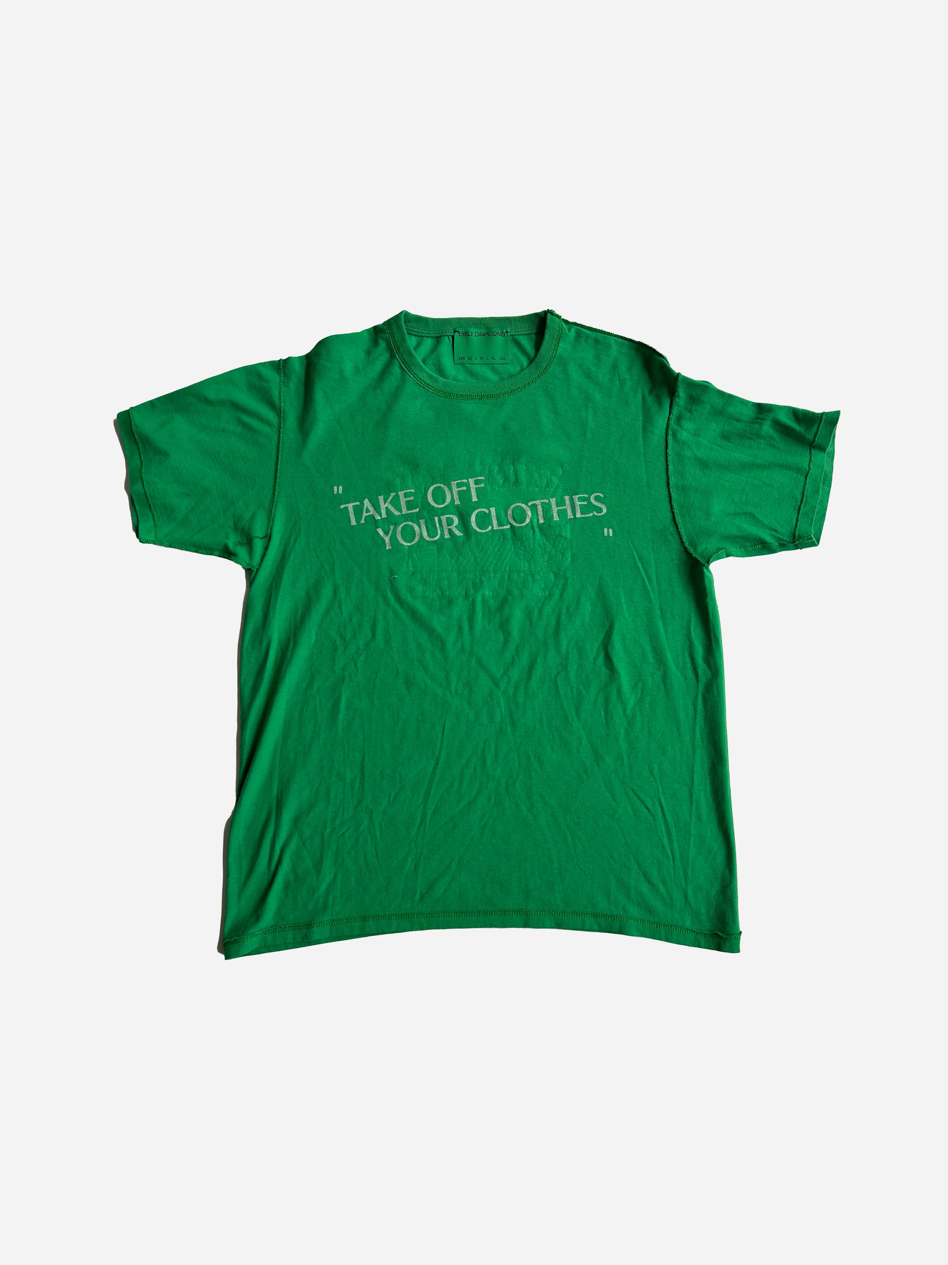 "TAKE OFF YOUR CLOTHES" are all very very very specifically sourced one of a kind vintage t shirts. That EDL deems perfect - screen printed on the reverse side in different colors in our EDL BRAND FONT. you get 2 amazing tees for 1