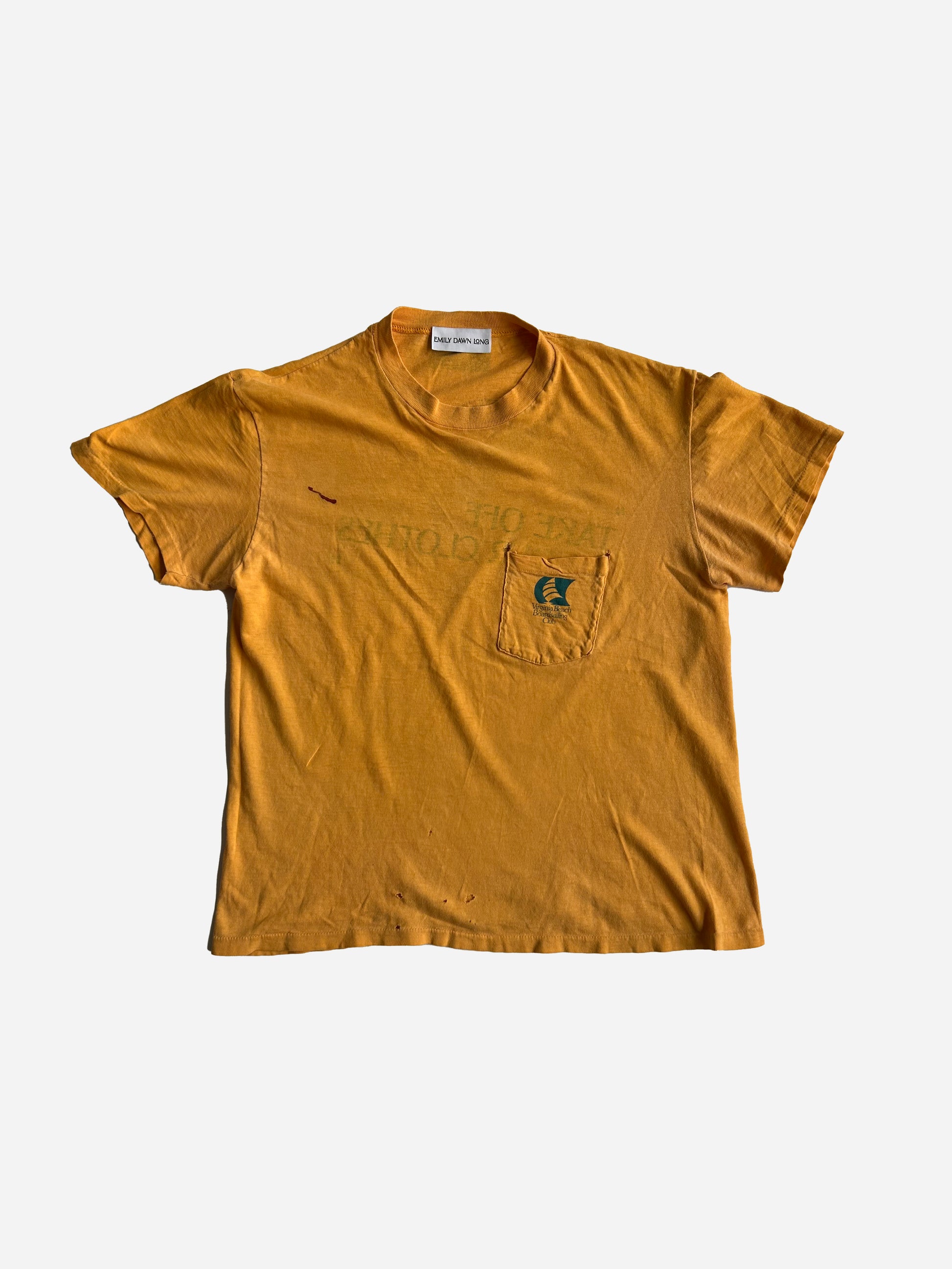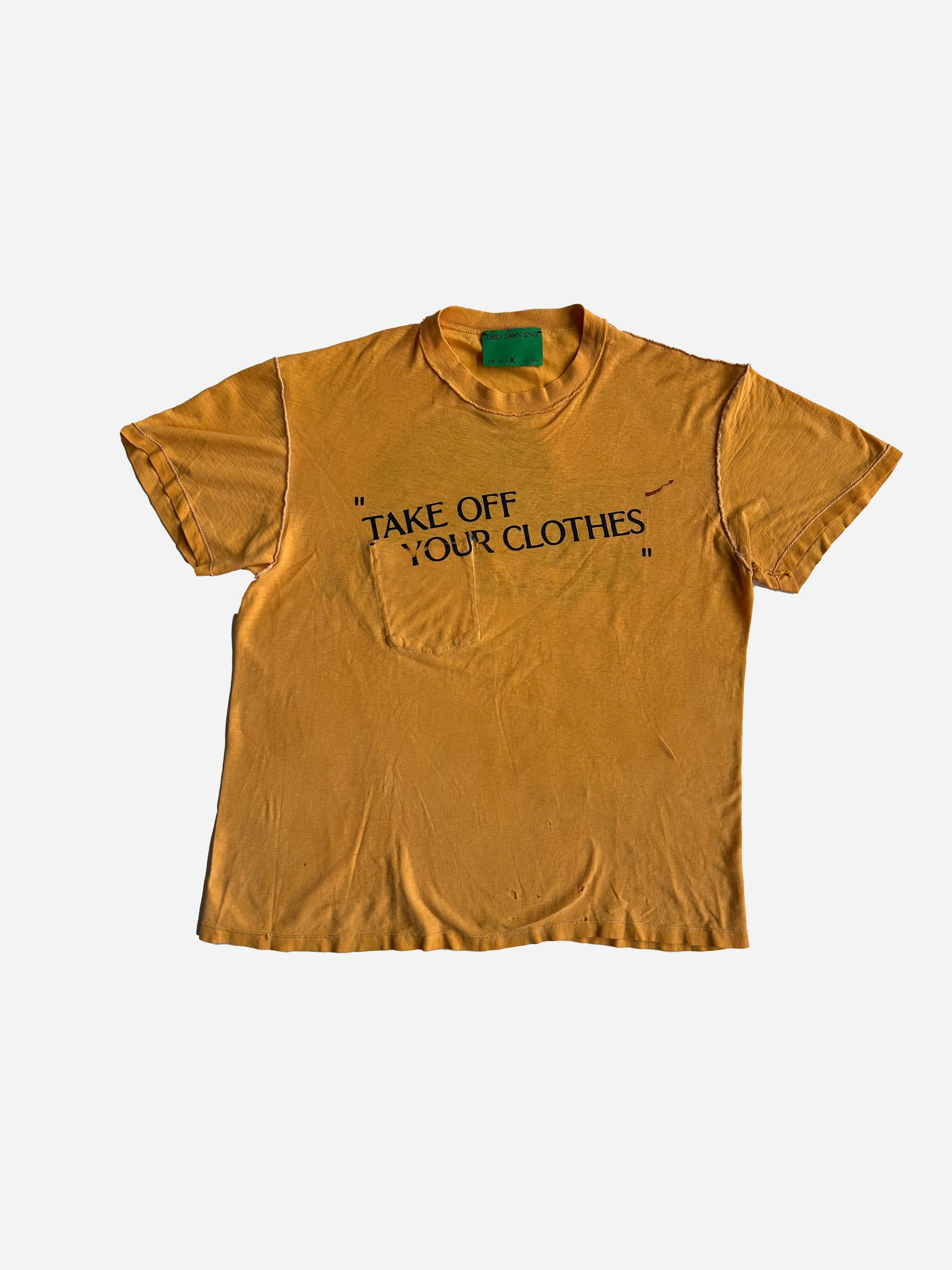 "TAKE OFF YOUR CLOTHES" are all very very very specifically sourced one of a kind vintage t shirts. That EDL deems perfect - screen printed on the reverse side in different colors in our EDL BRAND FONT. you get 2 amazing tees for 1