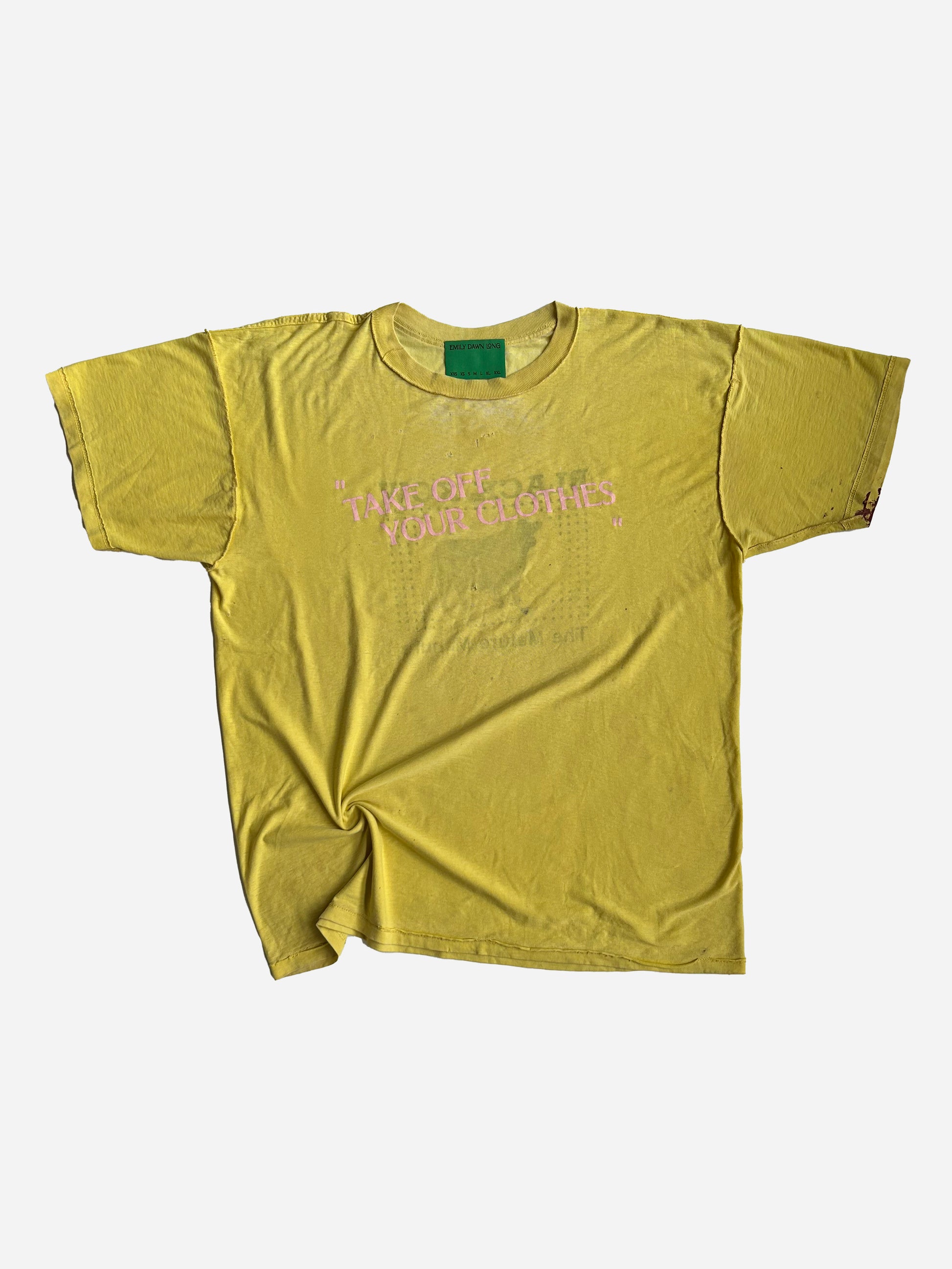 "TAKE OFF YOUR CLOTHES" are all very very very specifically sourced one of a kind vintage t shirts. That EDL deems perfect - screen printed on the reverse side in different colors in our EDL BRAND FONT. you get 2 amazing tees for 1
