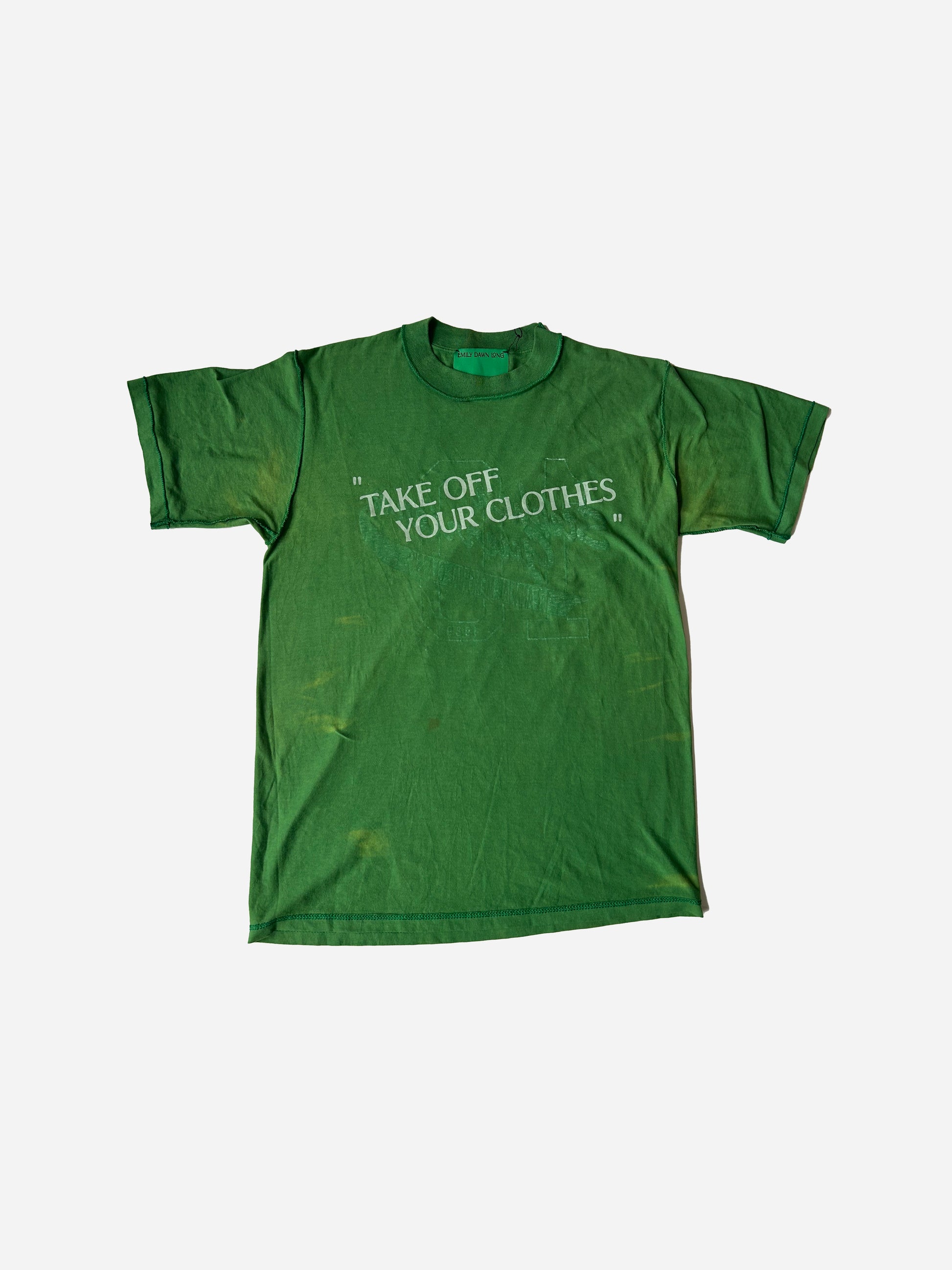 "TAKE OFF YOUR CLOTHES" are all very very very specifically sourced one of a kind vintage t shirts. That EDL deems perfect - screen printed on the reverse side in different colors in our EDL BRAND FONT. you get 2 amazing tees for 1