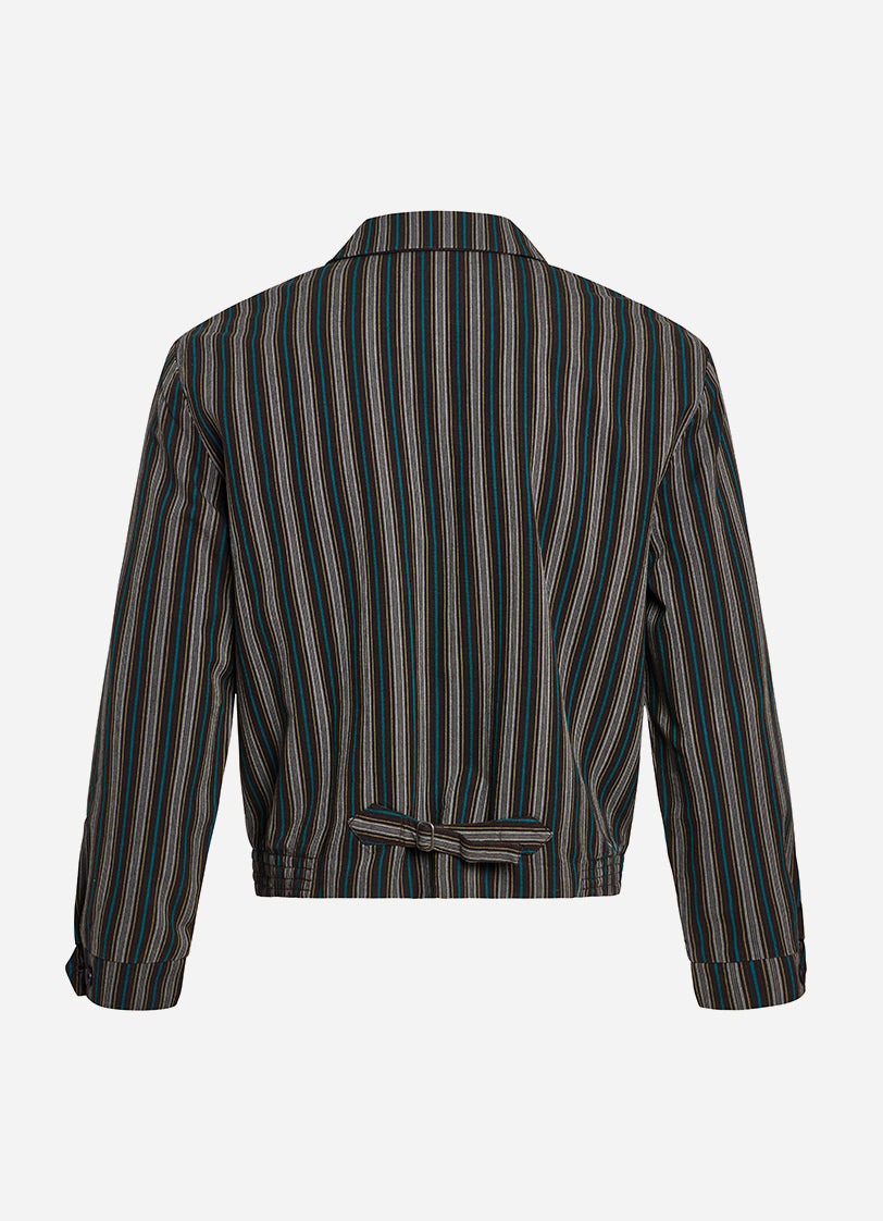 The Vandyke Stripe Jacket is the perfect mens cropped 'work-mans' jacket. Made of 100% cotton this is Uni-sex and woven in a lovely Brown, Teal-Green and Yellow Grey Stripe. 100 units only.